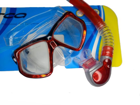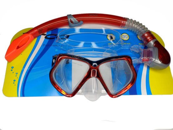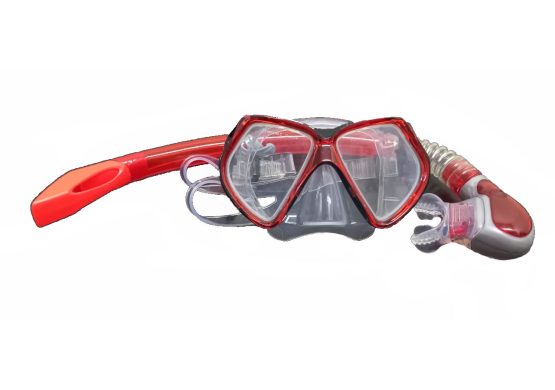Máscara de silicona y esnorkel, silicona transparente y marco rojo