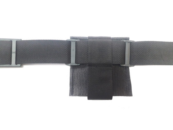 - Dos trabas (reguladores) de poliester para fijar el bolsillo en correas de 50 mm tipo cinturón de lastre.