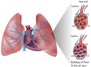 Una acumulación de líquido en los pulmones puede hacer que al cuerpo le falte oxígeno.